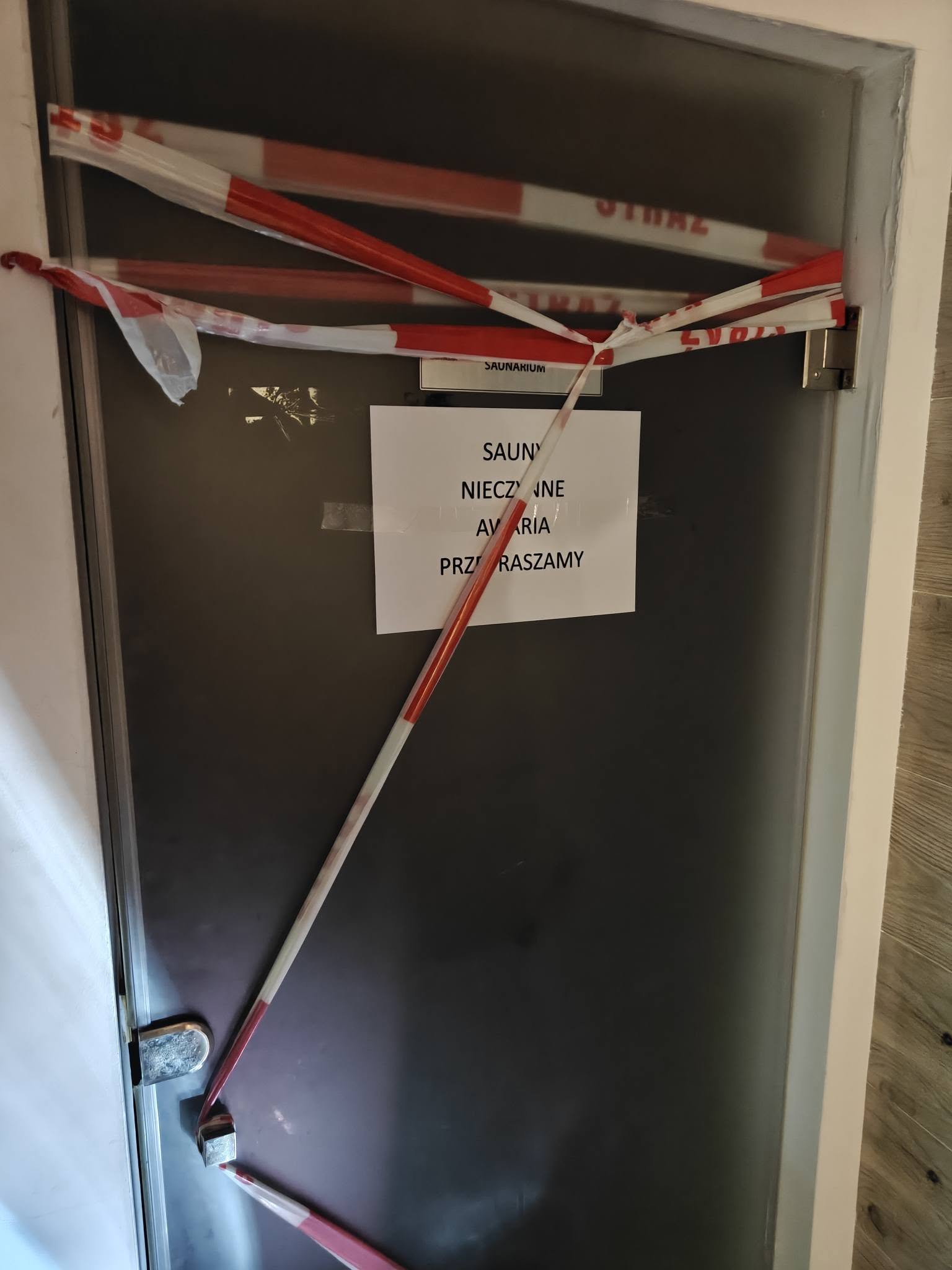 W związku z tym podjęto decyzję o bezwarunkowym zamknięciu strefy saun. Zagrożony fragment terenu został odpowiednio zabezpieczony taśmami ostrzegawczymi, aby uniemożliwić dostęp klientów i pracowników.