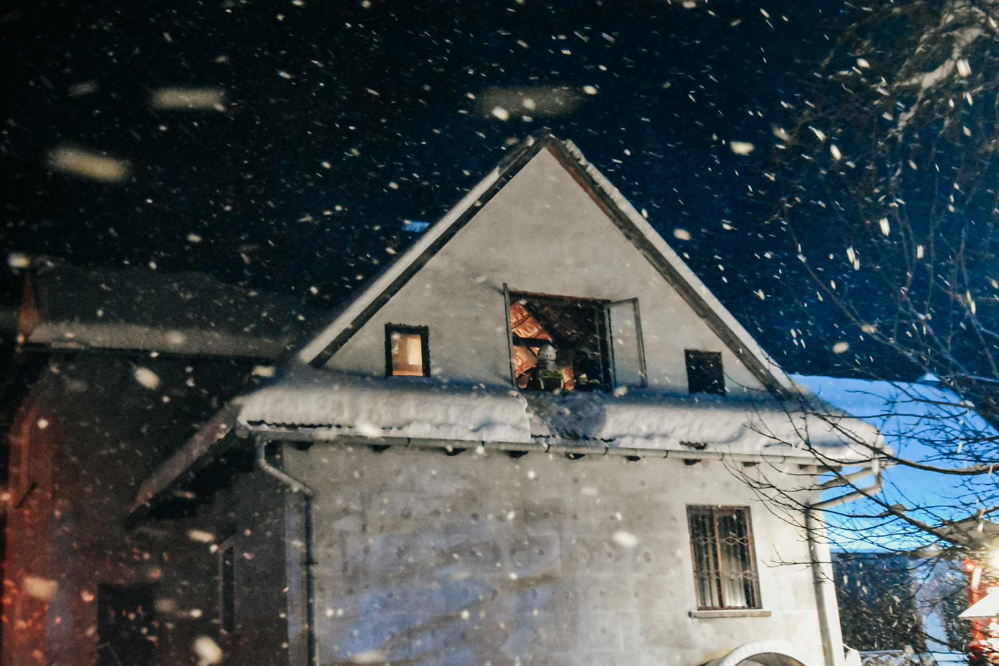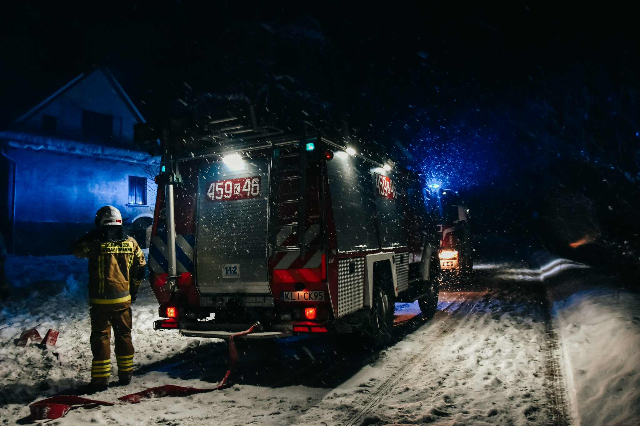– Mężczyzna który sam zamieszkiwał budynek opuścił go przed przybycie strażaków, nie odnosząc obrażeń. Strażacy odłączyli zasilanie energii elektrycznej w obiekcie, a następnie przystąpili do gaszenia domu oraz obrony drugiego zagrożonego budynku. Trzeba było również wykonać niezbędne prace rozbiórkowe w celu dotarcia do ukrytych źródeł ognia. Z poddasza wyniesiono na zewnątrz tlące się wyposażenie celem dogaszenia. Ze względu na duże opady śniegu doraźnie zabezpieczono uszkodzony dach nakrywając go plandeką i folią – informuje st. kpt. Wojciech Bogacz, rzecznik prasowy PSP w Limanowej.
