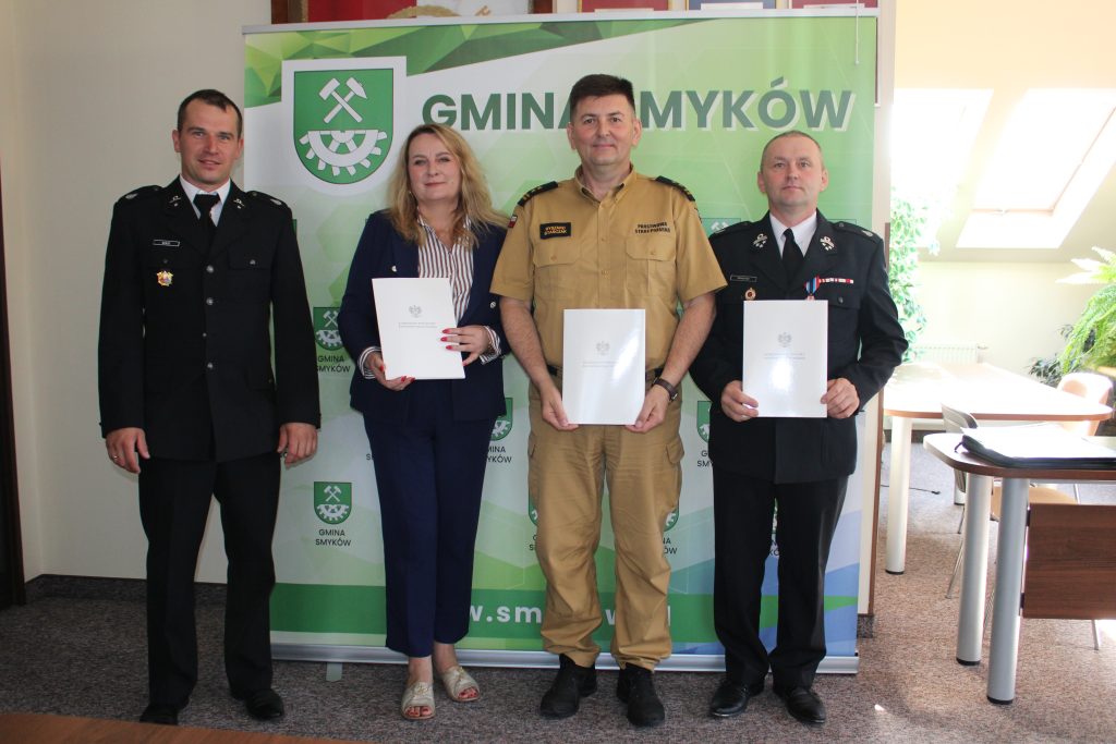 Porozumienia podpisali: prezes OSP Kozów dh Mariusz Kos, prezes OSP Wilczkowice dh Sylwester Król, prezes OSP Węgrzyn dh Paweł Szmit, wójt Gminy Smyków Beata Janiszewska, p.o. burmistrza Radoszyc Robert Lisowski oraz komendant powiatowy PSP w Końskich bryg. Ryszard Stańczak .