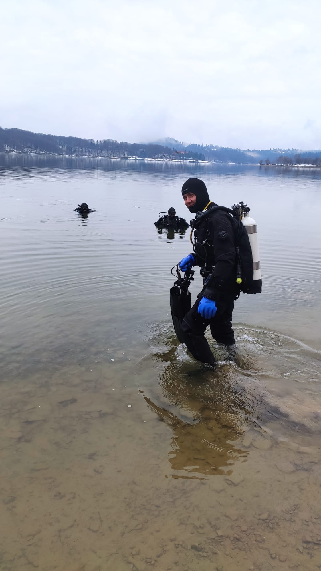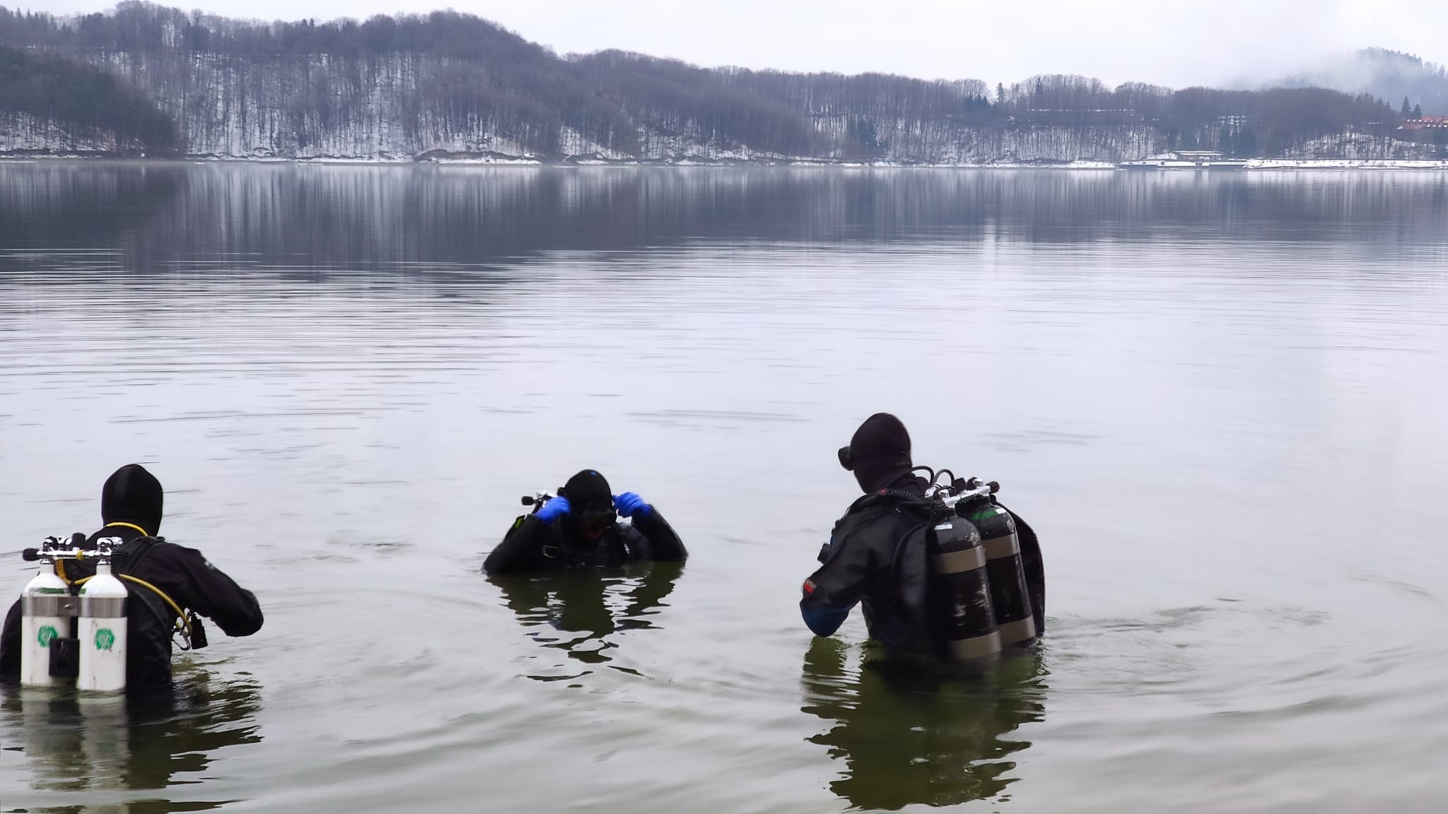 Pierwsza grupa uczestnicząca w zimowym nurkowaniu zaprezentowała praktyczne ćwiczenia, które pozwalają sprawdzić procedury w ekstremalnych warunkach.