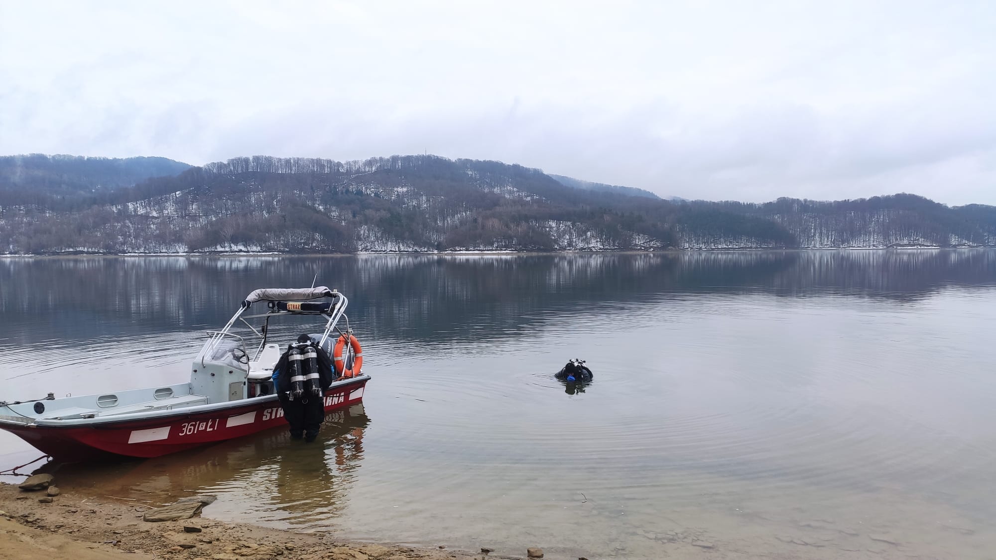 Na Jeziorze Solińskim trwa zimowe doskonalenie zawodowe strażaków-nurków ze Specjalistycznych Grup Ratownictwa Wodno-Nurkowego. W zajęciach uczestniczą grupy z Tarnobrzega, Przemyśla oraz Sanoka.