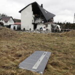 23.02.2026. Brzezinki w gminie Masłów. Dom jednorodzinny po wybuchu butli z gazem / Fot. Jarosław Kubalski – Radio KielceSiła wybuchu gazu była tak duża, iż drzwi wejściowe do domu przeleciały na sąsiednią działkę kilkadziesiąt metrów, a okno wypadło z framugi i przeleciało także kilkadziesiąt metrów przez ulicę.