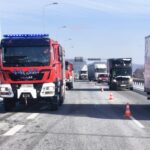 Straż pożarna zabezpiecza miejsce zdarzenia. Strażacy skontrolowali temperaturę turbiny i sprawdzili kamerą termowizyjną pojazd i naczepę, by ustalić, czy nie ma tam ukrytych zarzewi ognia.