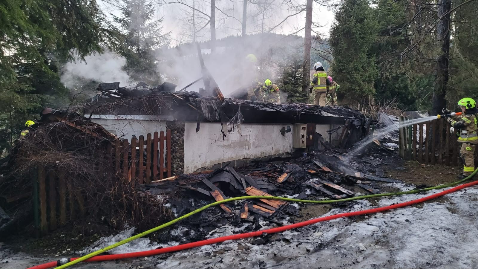 Po przyjeździe na miejsce zdarzenia okazało się, iż ogniem objęty jest budynek o długości 10 metrów i szerokości 6 metrów. W chwili wybuchu pożaru w obiekcie nikt nie przebywał.