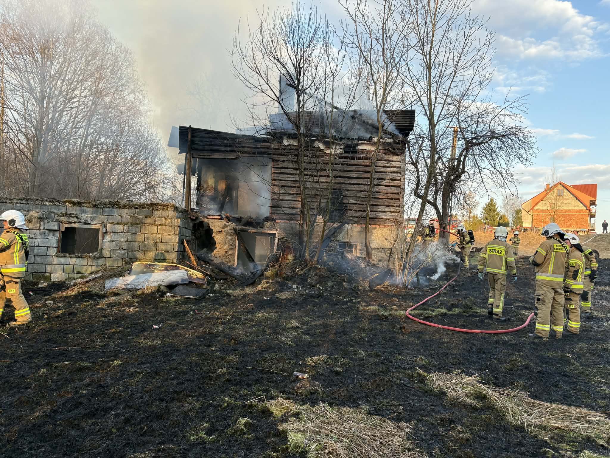 – Strażacy po zabezpieczeniu miejsca pożaru przystąpili do gaszenia obiektu i trawy. W wyniku pożaru uszkodzona została konstrukcja budynku. Dokonano rozbiórki elementów celem dogaszenia ukrytych ognisk pożaru. Łącznie 30 strażaków zadysponowanych było do akcji z Państwowej Straży Pożarnej z Limanowej, oraz Ochotniczych Straży Pożarnych z Dobrej, Podłopienia oraz Tymbarku – informuje st. kpt. Wojciech Bogacz, rzecznik prasowy PSP w Limanowej.