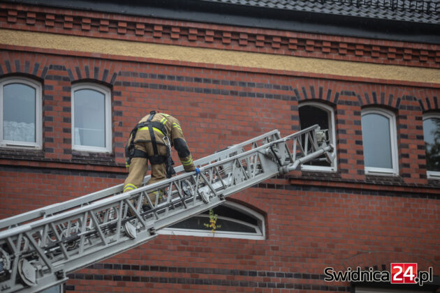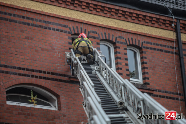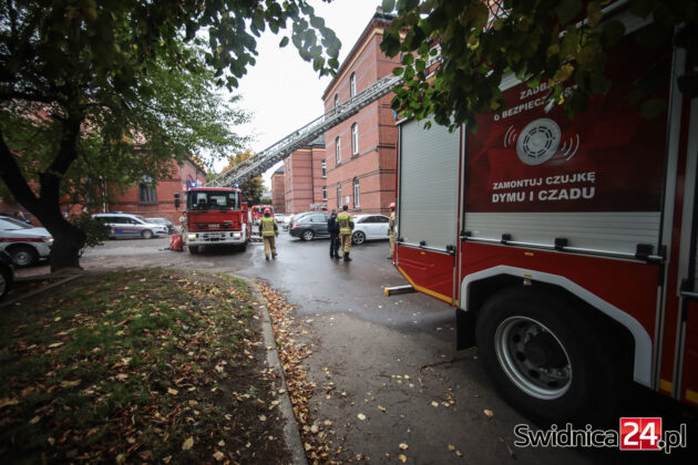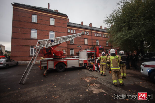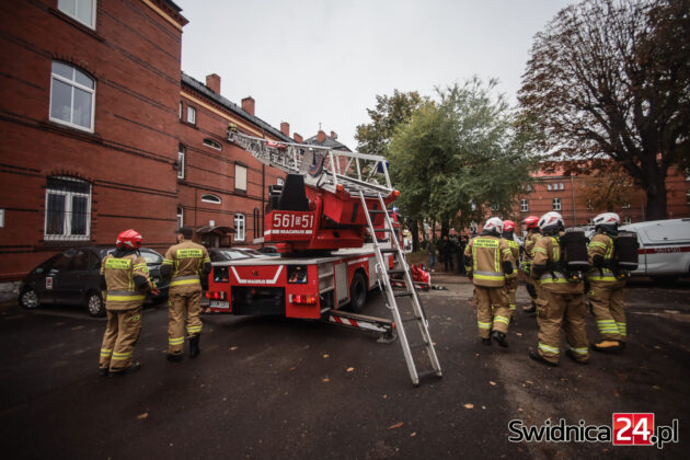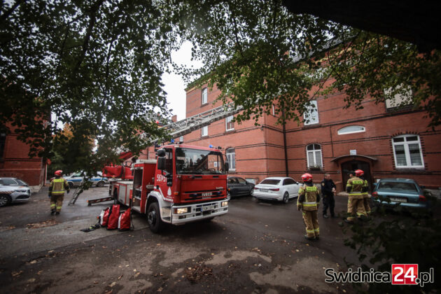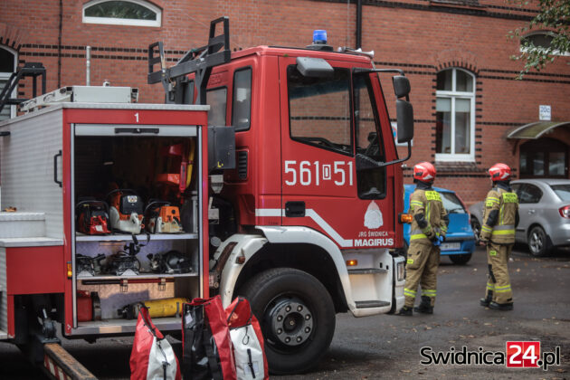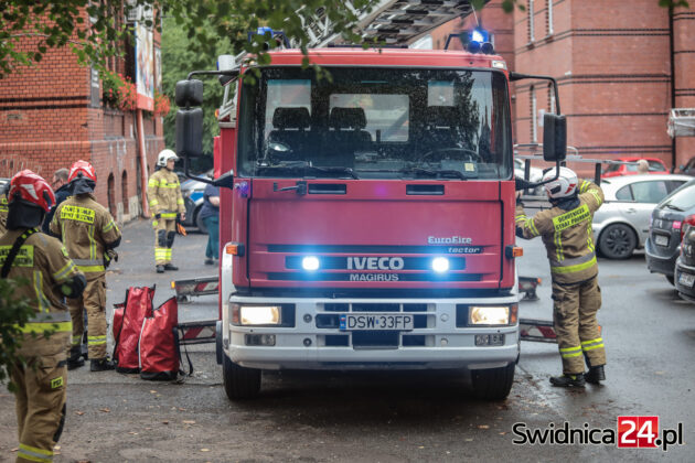 Służby zostały zaalarmowane o godz. 11.53. – Na miejscu okazało się, iż pożar miał niewielkie rozmiary i został ugaszony przed przybyciem służb. Rolą strażaków jest dokładne sprawdzenie, czy nie ma zagrożenia wznowienia pożaru – informuje bryg. Łukasz Grzelak z Komendy Powiatowej Państwowej Straży Pożarnej w Świdnicy. Pomieszczenie zostało przewietrzone.
