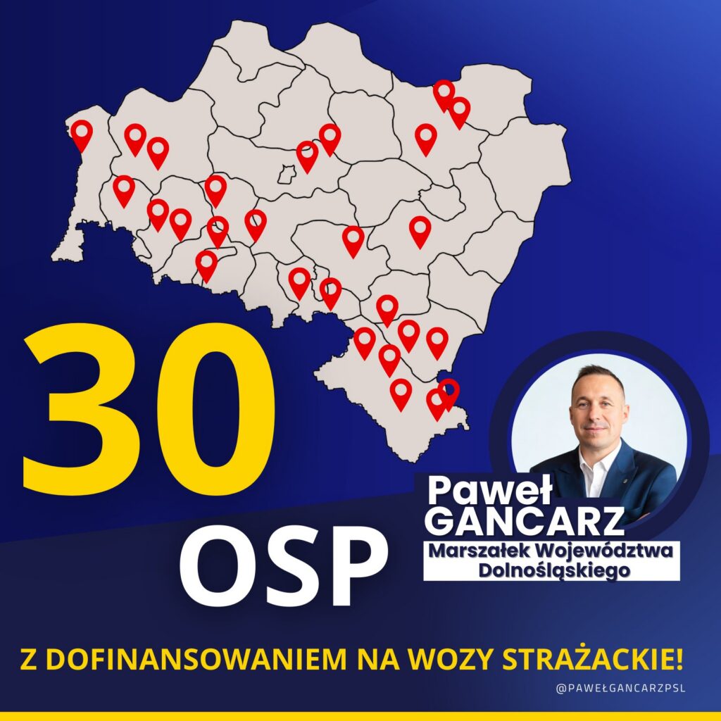 Samorząd województwa dolnośląskiego przeznaczył 3,5 mln zł na zakup nowych pojazdów dla Ochotniczych Straży Pożarnych. Dzięki temu wsparciu 30 jednostek OSP w regionie wzbogaci się o nowoczesne i niezawodne wozy strażackie, które zwiększą efektywność działań ratowniczych i bezpieczeństwo mieszkańców.