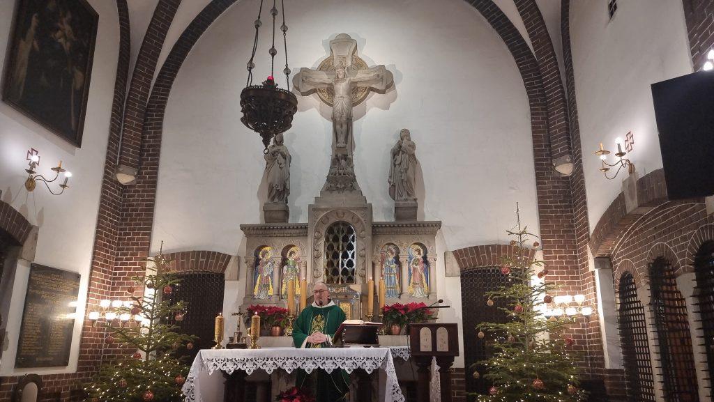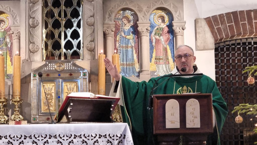 Tymbarski Ton uczestniczył we Mszy św. o godz.8, sprawowanej przez Ojca Przeora Jackowskiego, który wygłosił też homilię, w kościele Opieki św. Józefa, który jest kościołem parafialnym, ale jednocześnie kościołem Zgromadzenia Sióstr Karmelitanek Bosych.