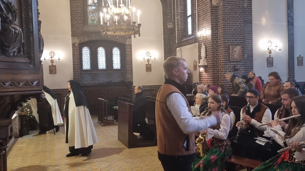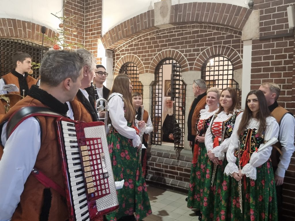 Strażacka Orkiestra Dęta Tymbarski Ton w niedzielę przybyła z kolędą do Krakowa, do Sióstr Karmelitanek Bosych przy ul.Łobzowskiej. Do tego Zgromadzenia w 2022 roku wstąpiła Siostra Marta, która przed wstąpieniem do zakonu była członkiem strażackiej orkiestry.
