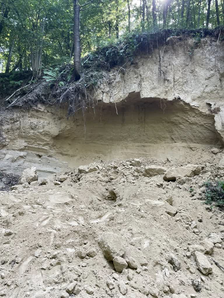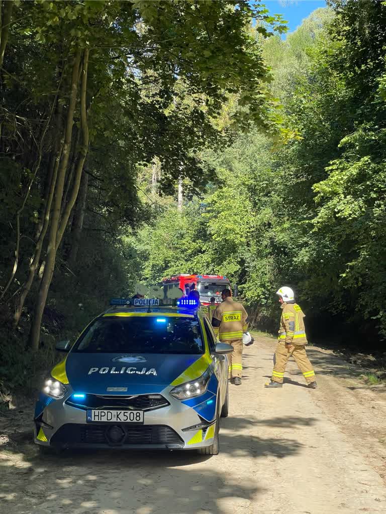 Służby zabezpieczyły skarpę w rejonie lasu, gdzie doszło do osunięcie się ziemi. Sprawę wyjaśnia policja.