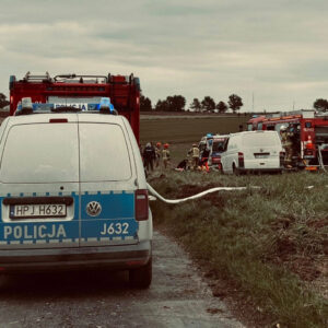 Strażacy ugasili płonący pojazd i pomogli w ewakuacji rannego pilota. Lekarze walczyli o życie kierowcy, jednak obrażenia okazały się śmiertelne.
